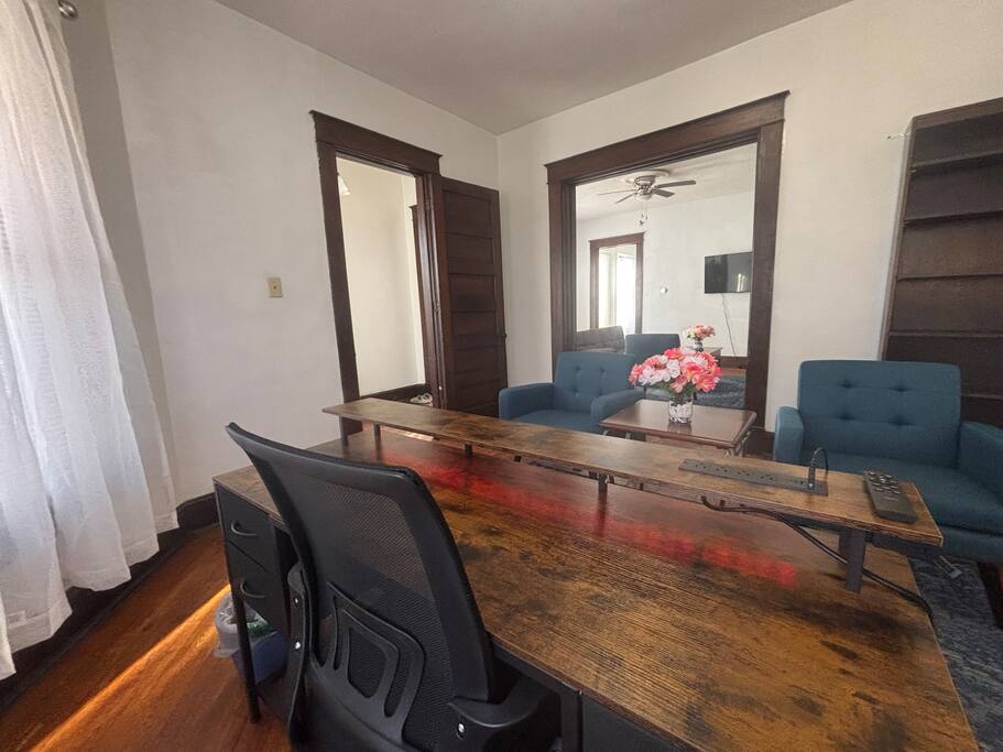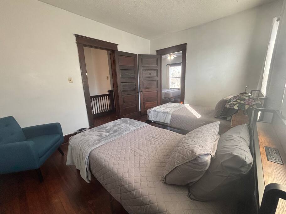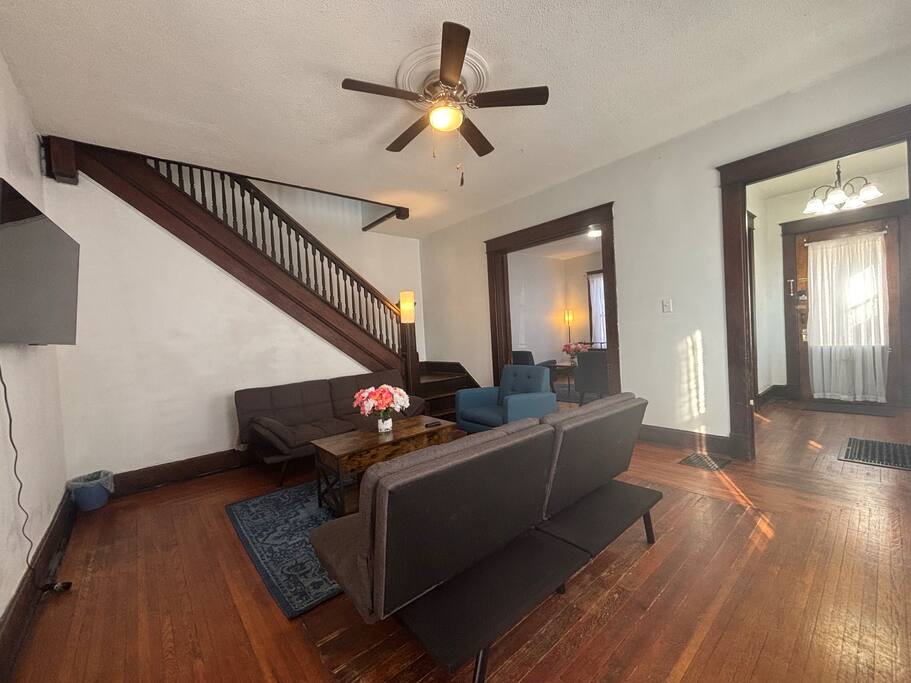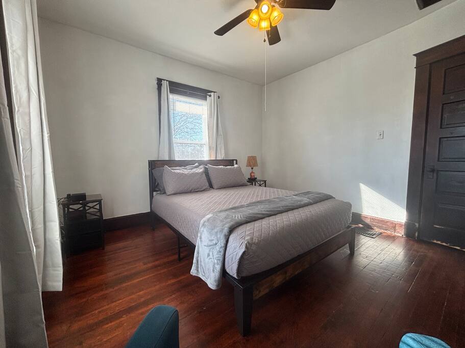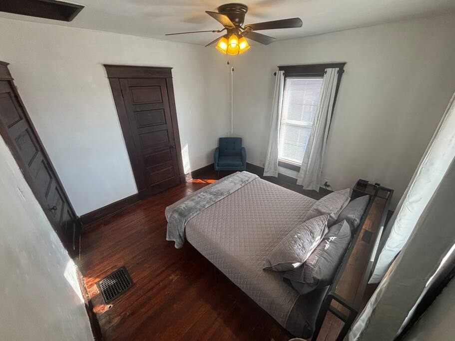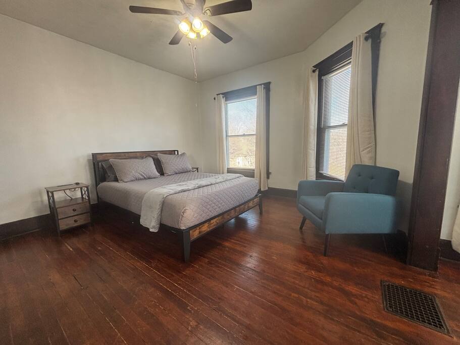 Historic Property: Built in 1891 and located in Terre Haute’s Farrington Grove Historic District. Expect charm and character consistent with a well-maintained older home. Stairs Required: This is a second-floor unit accessible only by exterior stairs. Please consider this if you have mobility concerns. Quiet Residential Area: The neighborhood is generally calm and peaceful, with easy access to downtown, ISU (1.5 miles), hospitals, and restaurants. Climate Comfort: The suite has central heat and AC with its own thermostat. Wi-Fi & Streaming: High-speed Wi-Fi is provided. The TV is equipped for streaming (guests log in with their own accounts). Self-Check-In: Access is via smart lock. Your unique code is sent before arrival. Parking: Free street parking is available directly in front of the property.