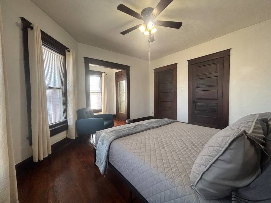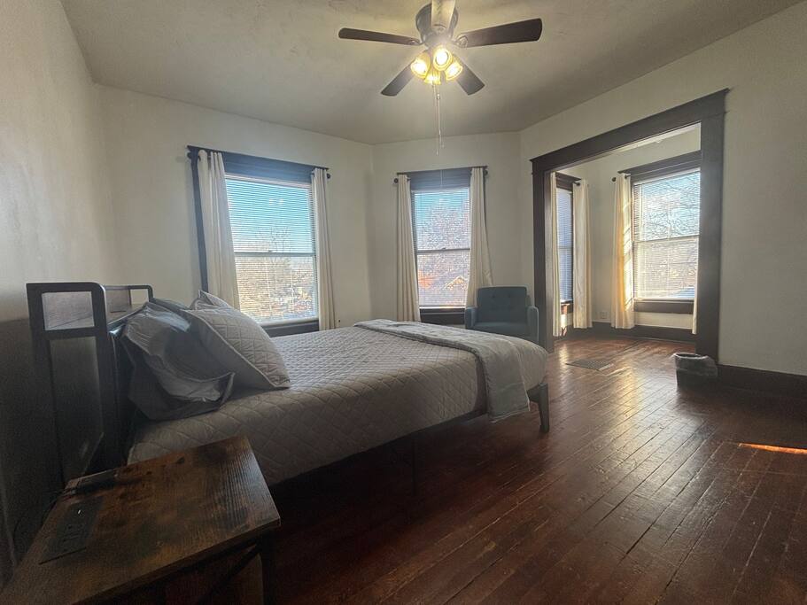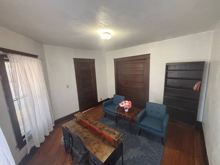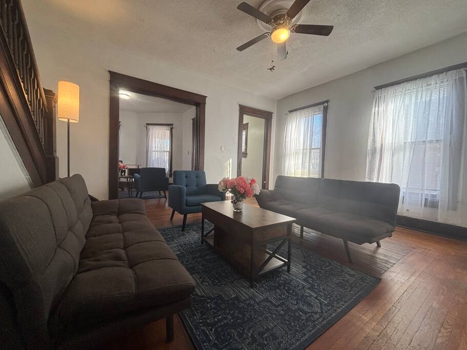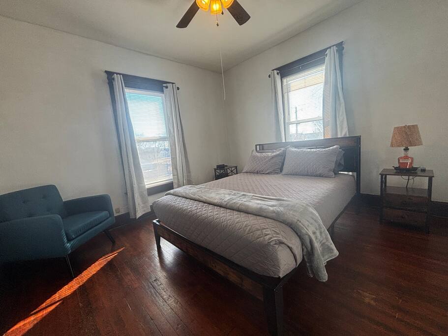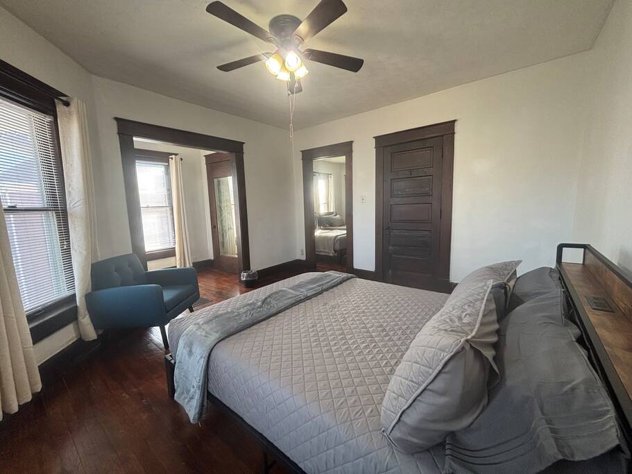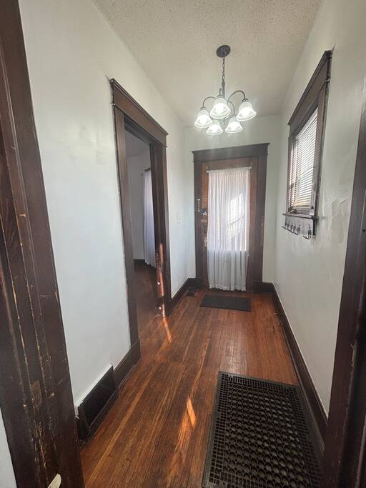 Historic Property: Built in 1891 and located in Terre Haute’s Farrington Grove Historic District. Expect charm and character consistent with a well-maintained older home. Stairs Required: This is a second-floor unit accessible only by exterior stairs. Please consider this if you have mobility concerns. Quiet Residential Area: The neighborhood is generally calm and peaceful, with easy access to downtown, ISU (1.5 miles), hospitals, and restaurants. Climate Comfort: The suite has central heat and AC with its own thermostat. Wi-Fi & Streaming: High-speed Wi-Fi is provided. The TV is equipped for streaming (guests log in with their own accounts). Self-Check-In: Access is via smart lock. Your unique code is sent before arrival. Parking: Free street parking is available directly in front of the property.
