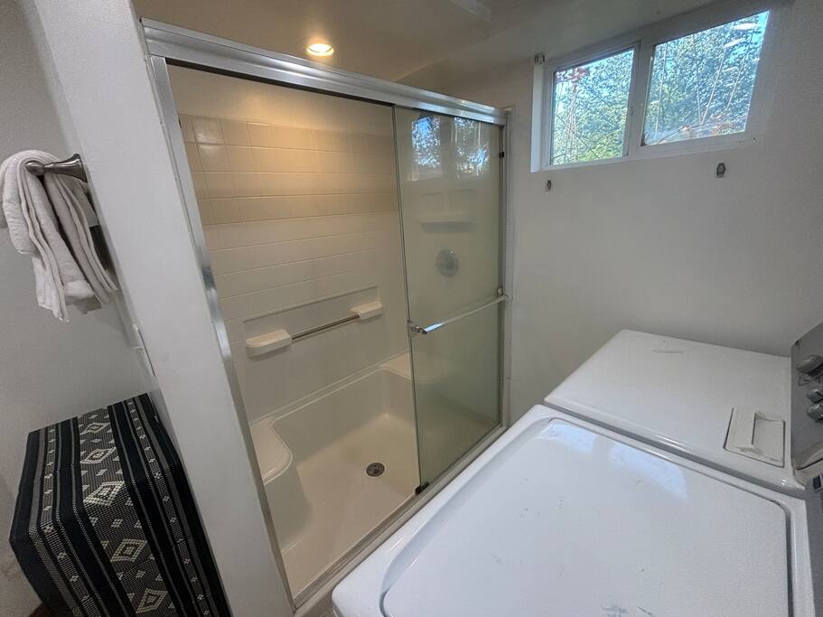 This one bedroom apartment has all the amenities that will make you feel right at home when you are away from home. This includes a queen size bed with 2 hard and 2 soft pillows, a separate workspace, an iron, clean towels, soap, shampoo, conditioner, toilet paper, paper towels, silverware, pots, pans, baking sheets, utensils, toaster, Brita water filter pitcher, coffee, tea, decaf, creamer, and a smart TV.