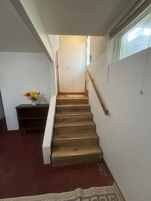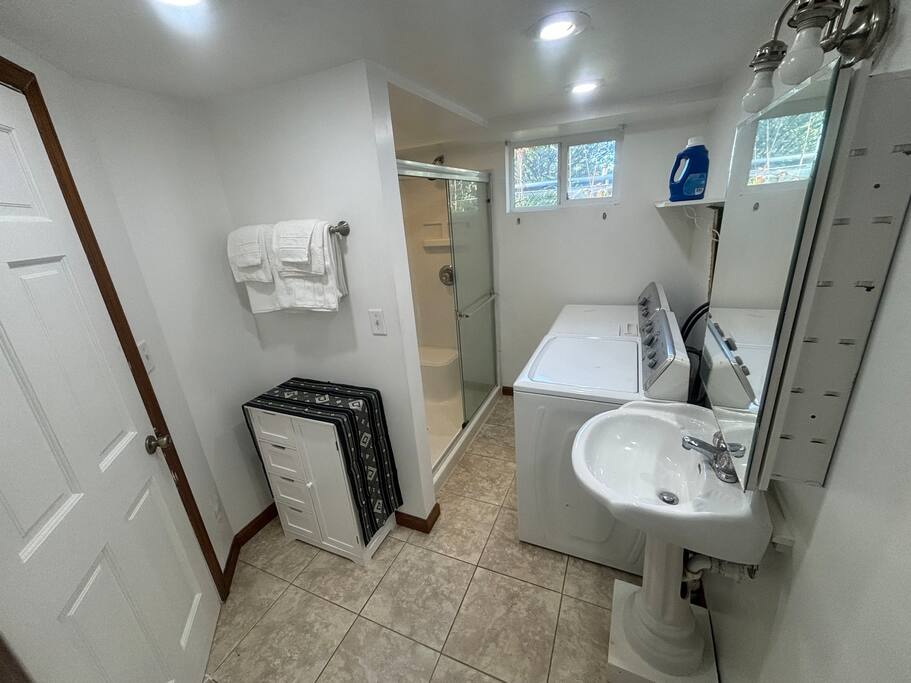 Guests will have the ability to park behind the house next to the garage or in front along the street. The parking in the back is first come first serve. The basement apartment is not located through the front door. To enter the basement apartment from the front of the house, walk to the right side along the sidewalk. The basement door is just past the small gray porch that goes up to the 2nd floor apartment. There are two steps that go down to the basement door. Enter your access code into the smart lock then wait for the blue checkmark to light up then open the door.