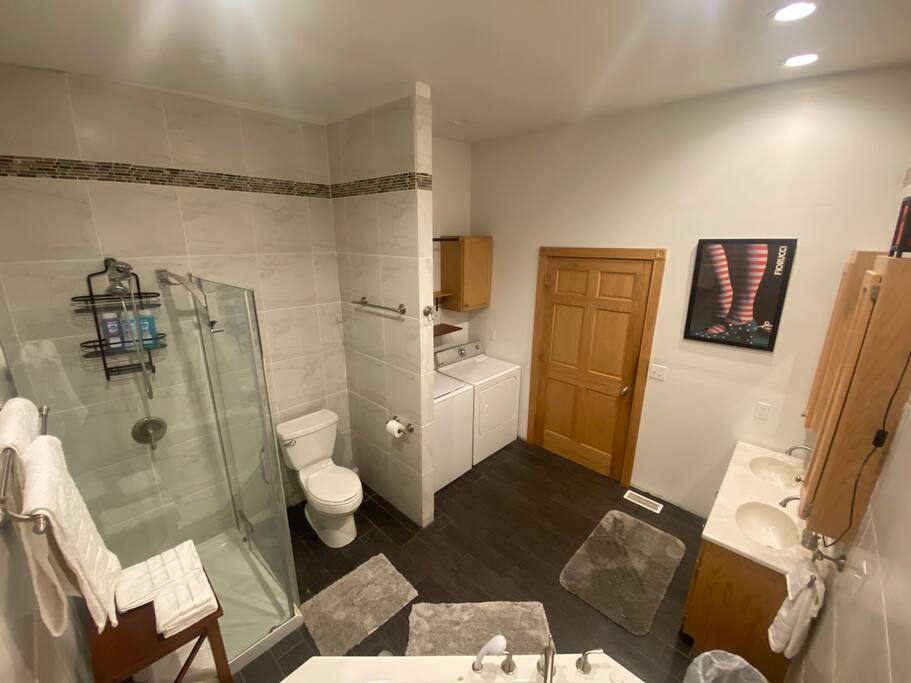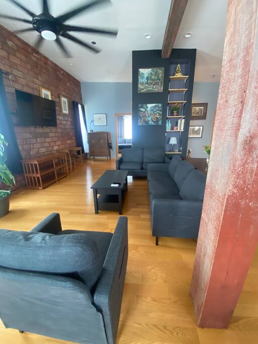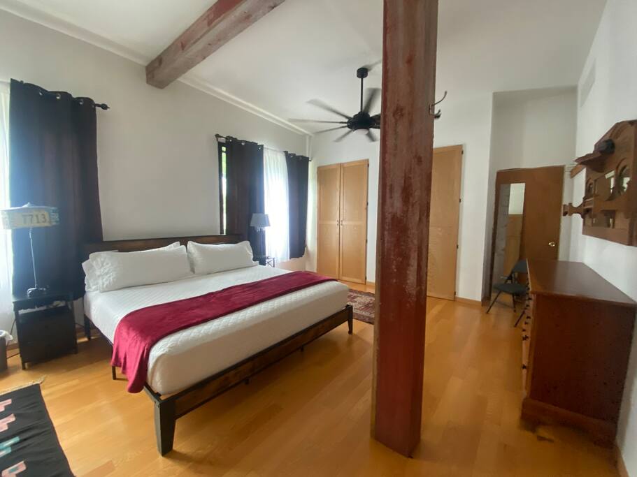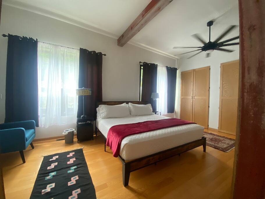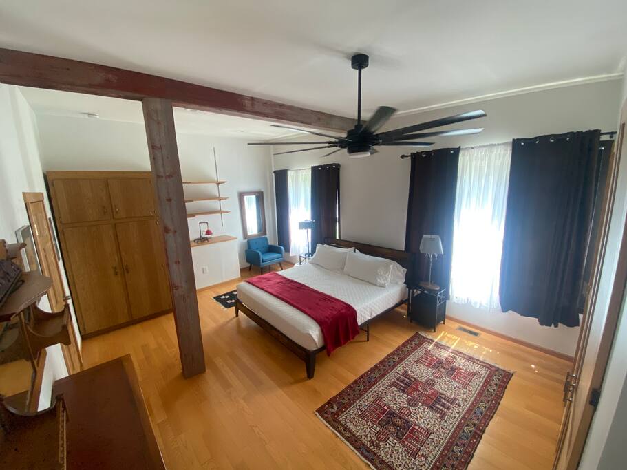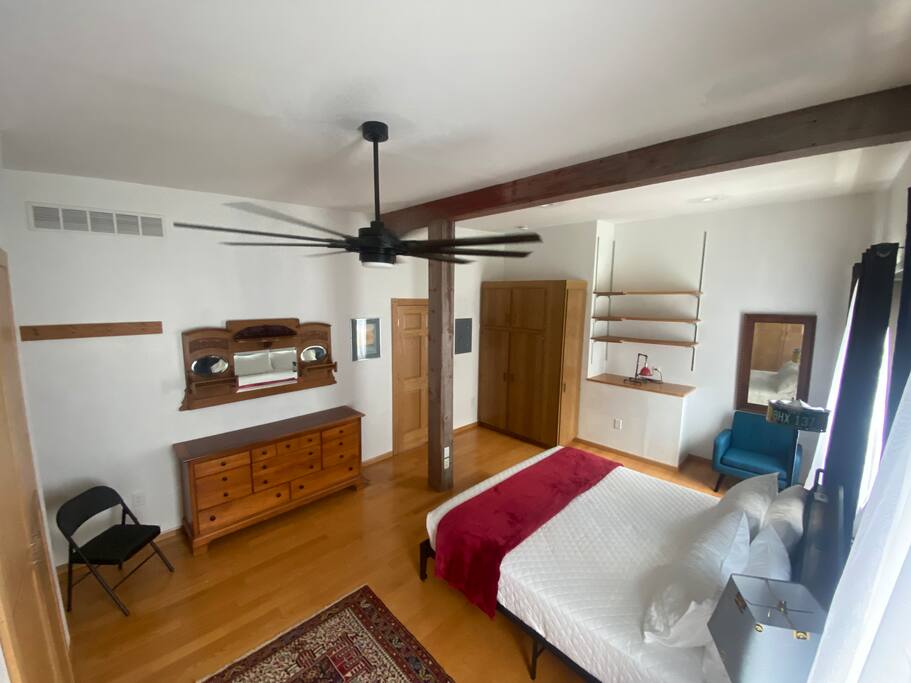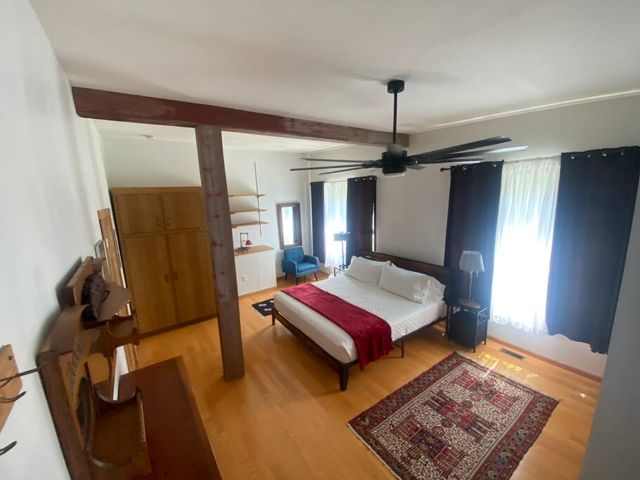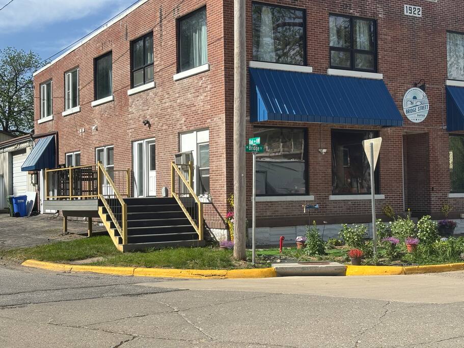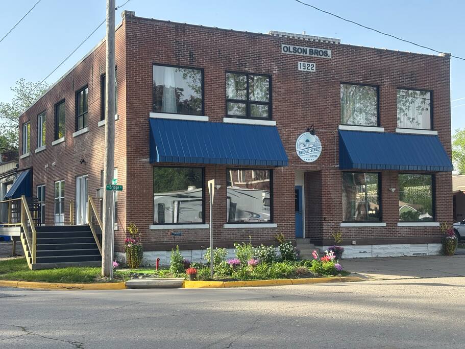 Suite A is a spacious second-floor 2-bedroom suite with great natural light and views overlooking West Bridge Street. Guests should be aware that the suite is located upstairs, so stairs are required to access it. The building is quiet, historic, and centrally located—just steps from restaurants, shops, parks, and the Turkey River.
